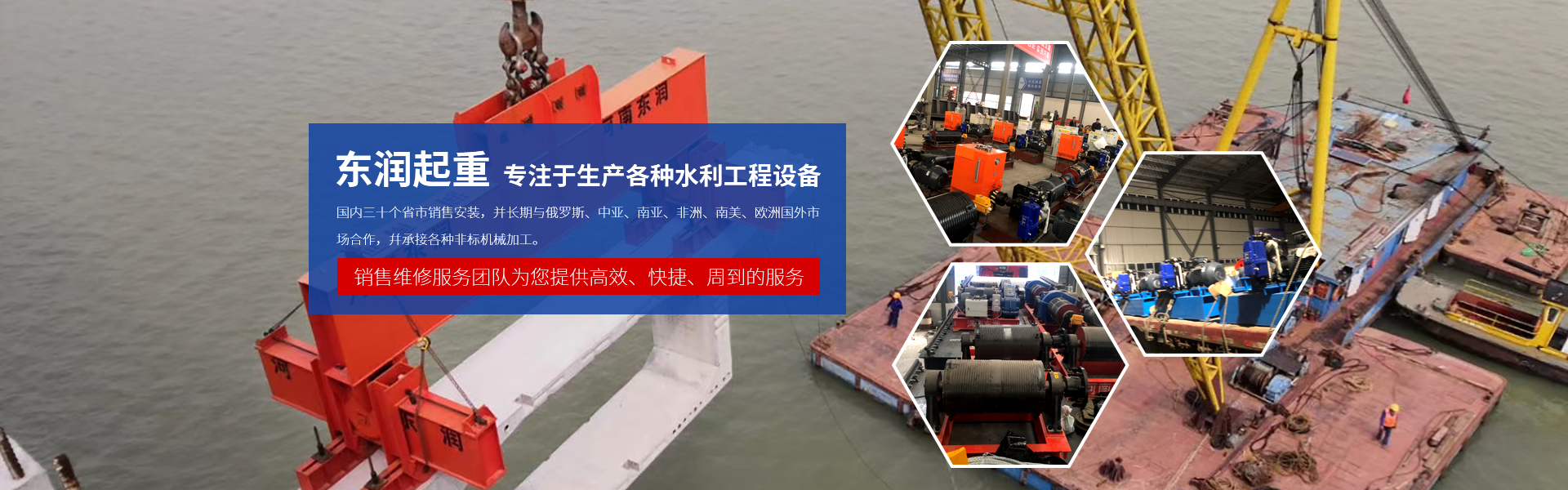 河南東潤起重設備有限公司始建于1992年,公司位于河南省起重工業園區,交通便利,環境優美,借得天獨厚的地理位置,和過硬的產品質量,迅速成長壯大,具實力的水利工程、起重配件生產安裝于一體的生產廠商?! |潤起重以中國水利工程為依托,專注于生產各種水利工程設備,公司卷揚機、啟閉機等水工設備遠銷海內外,國內三十個省市銷售安裝,并長期與俄羅斯、中亞、南亞、非洲、南美、歐洲國外市場合作,幷承接各種非標機......... 查看更多>>